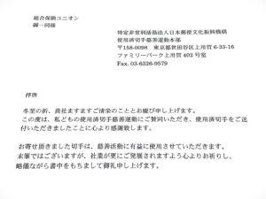昨年より慈善活動取り組んでおりました切手回収活動について